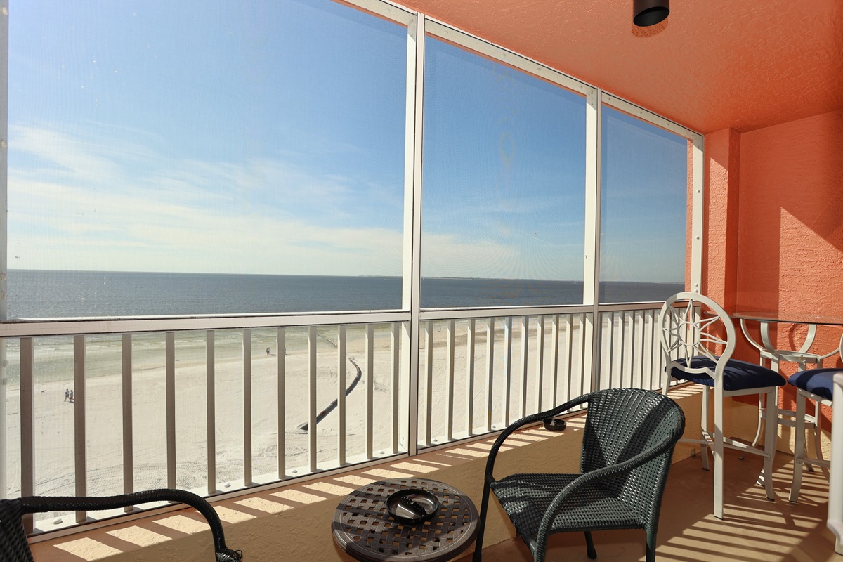 Step outside to your balcony and take in the calming sights and sounds of the Gulf of Mexico. With cozy outdoor seating and a relaxed ambiance, this space is perfect for sipping morning coffee or enjoying sunset cocktails. This Gulf-front unit provides the ideal balance of comfort and luxury, making it an unforgettable getaway destination. Onsite management provided by #1 rated: Fort Myers Beach Vacation Rentals.