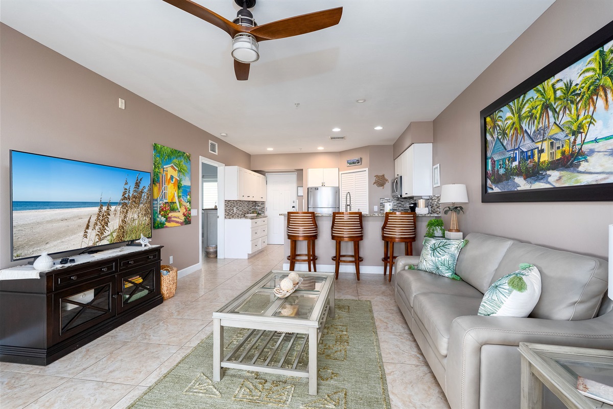“Castaway Dreams” at Harbour House Resort is a beautifully designed two-bedroom, two-bathroom retreat located in the heart of Times Square on Fort Myers Beach. Just steps from the sugar-white sand, waterfront dining, and vibrant island entertainment, this prime location puts you in the center of it all while still offering a relaxing coastal escape. The Harbour House community features a laid-back atmosphere with a pool and sun deck, perfect for enjoying sunny Florida days.