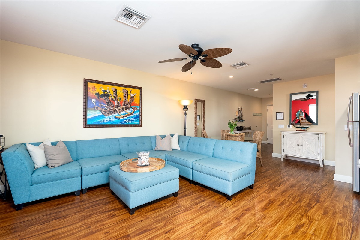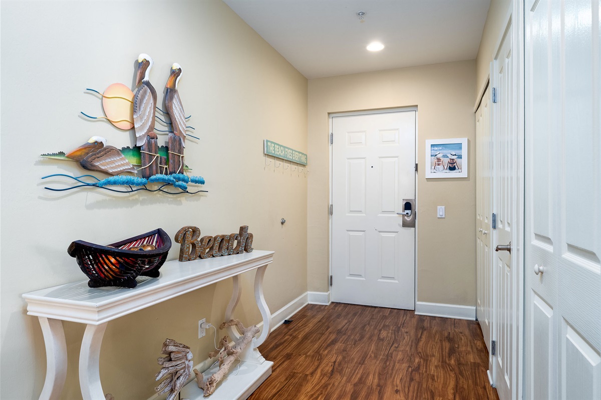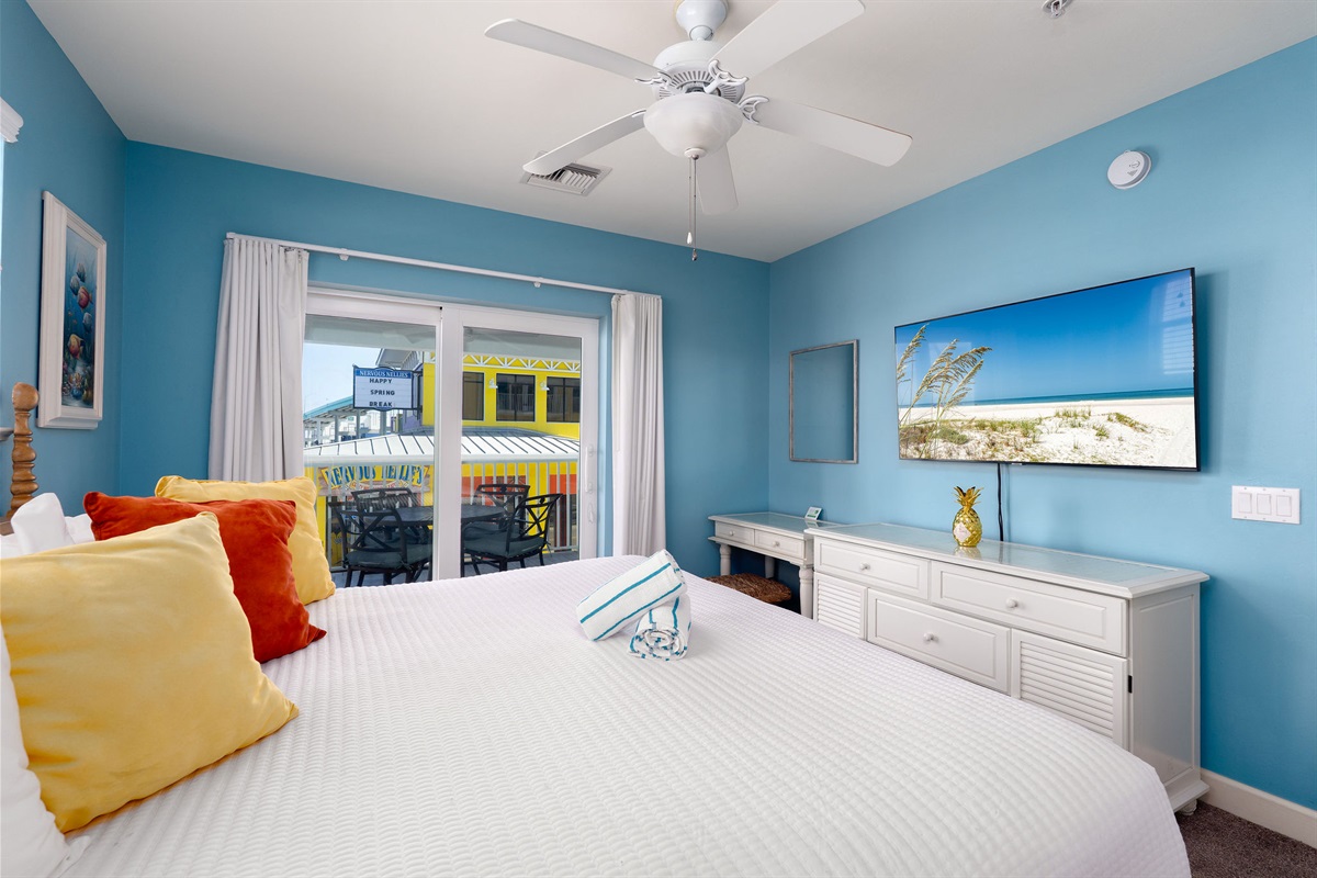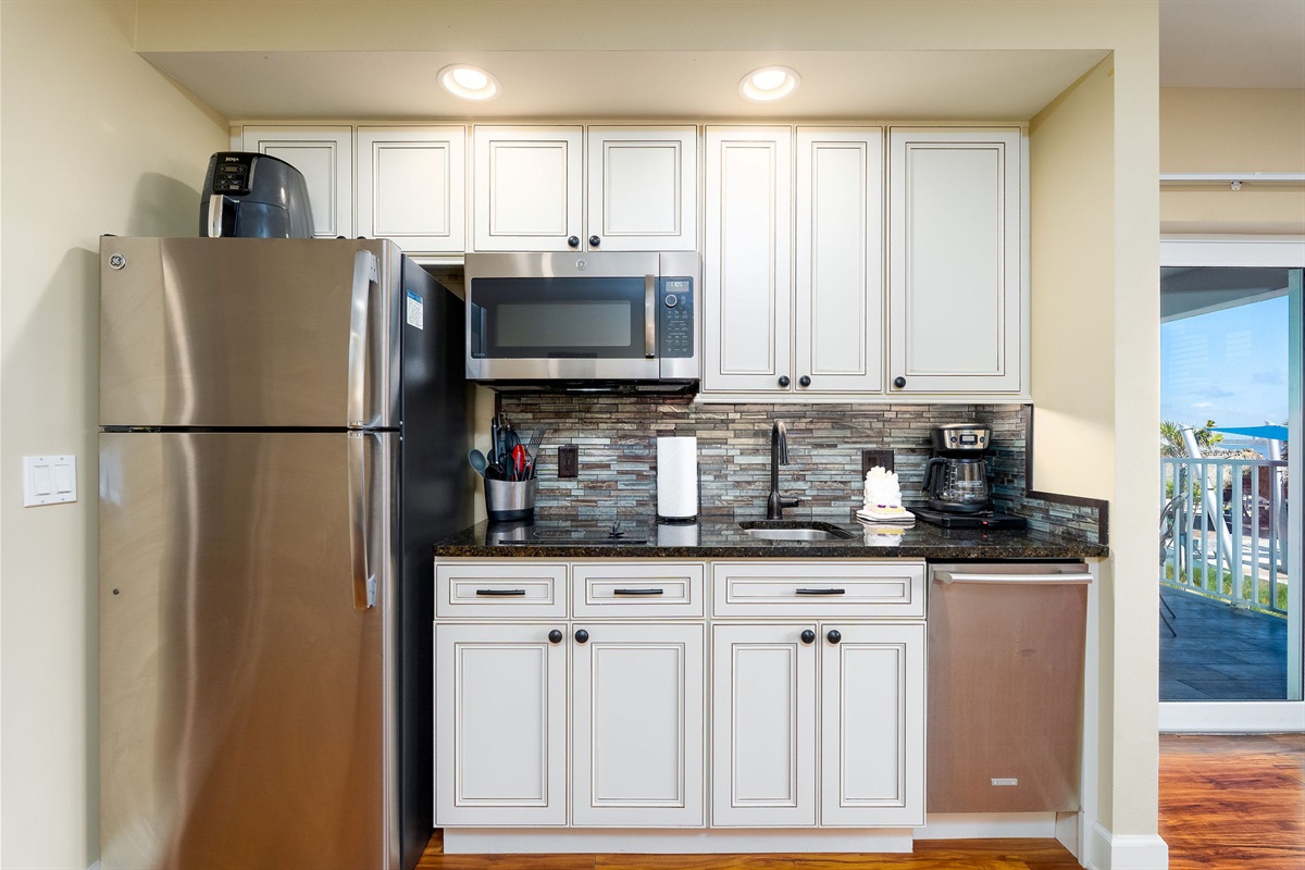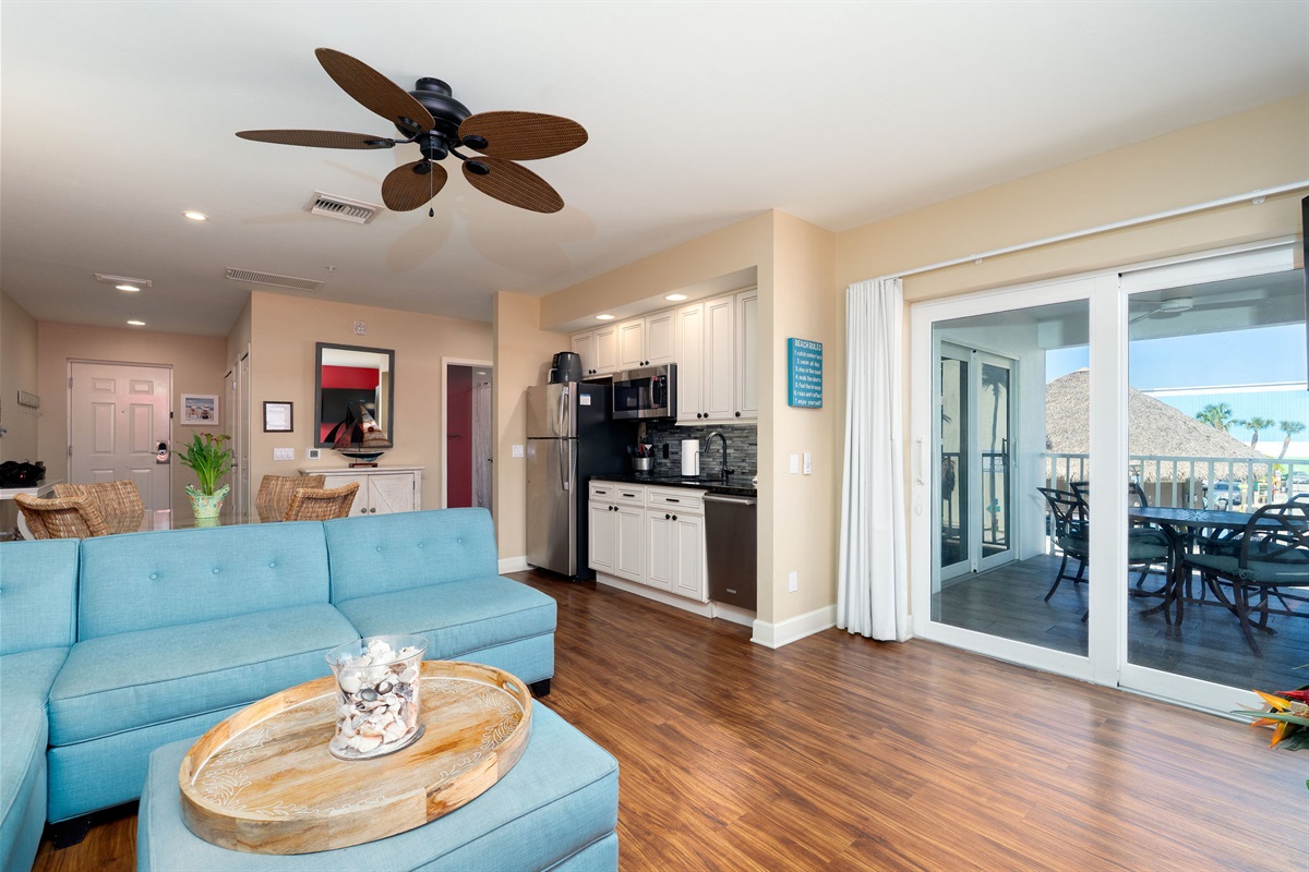 Inside, the unit is thoughtfully designed with comfort and style in mind. The spacious bedroom features a comfortable king-size bed, providing a peaceful place to unwind after a day in the sun. The open living area is bright and welcoming, complemented by a fully equipped kitchen with updated finishes, perfect for preparing meals or enjoying a quick breakfast before heading out. For added convenience, the unit also includes a private washer and dryer, making it ideal for extended stays.