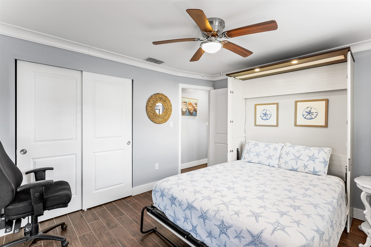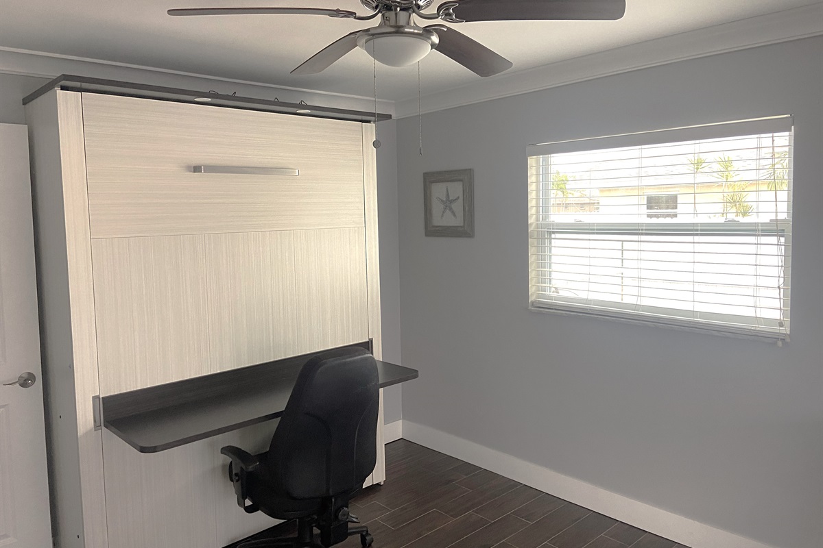 We have added a desk and workspace for those who would like an Office - large queen Murphy Bed converts to third bed if desired.